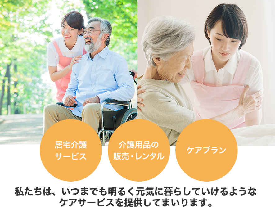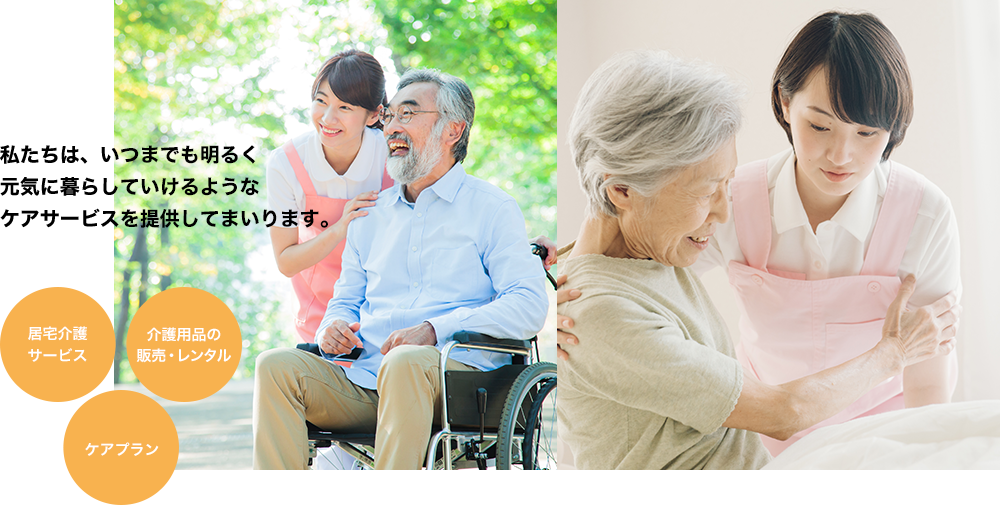 ご利用者の希望される生活やさまざまな思いを尊重し、 介護保険の「申請」から「サービス」のご利用まで お手伝いさせていただきます。
