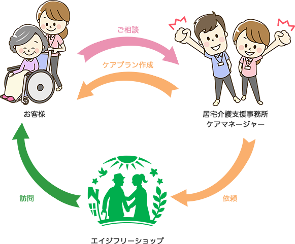 ケアマネージャーから依頼を受け、住環境プランナーと共にご高齢者や体が不自由な方の住まいを訪問し、 快適な生活を送っていただくための介護用品やリフォームなどを総合的にご提案します。